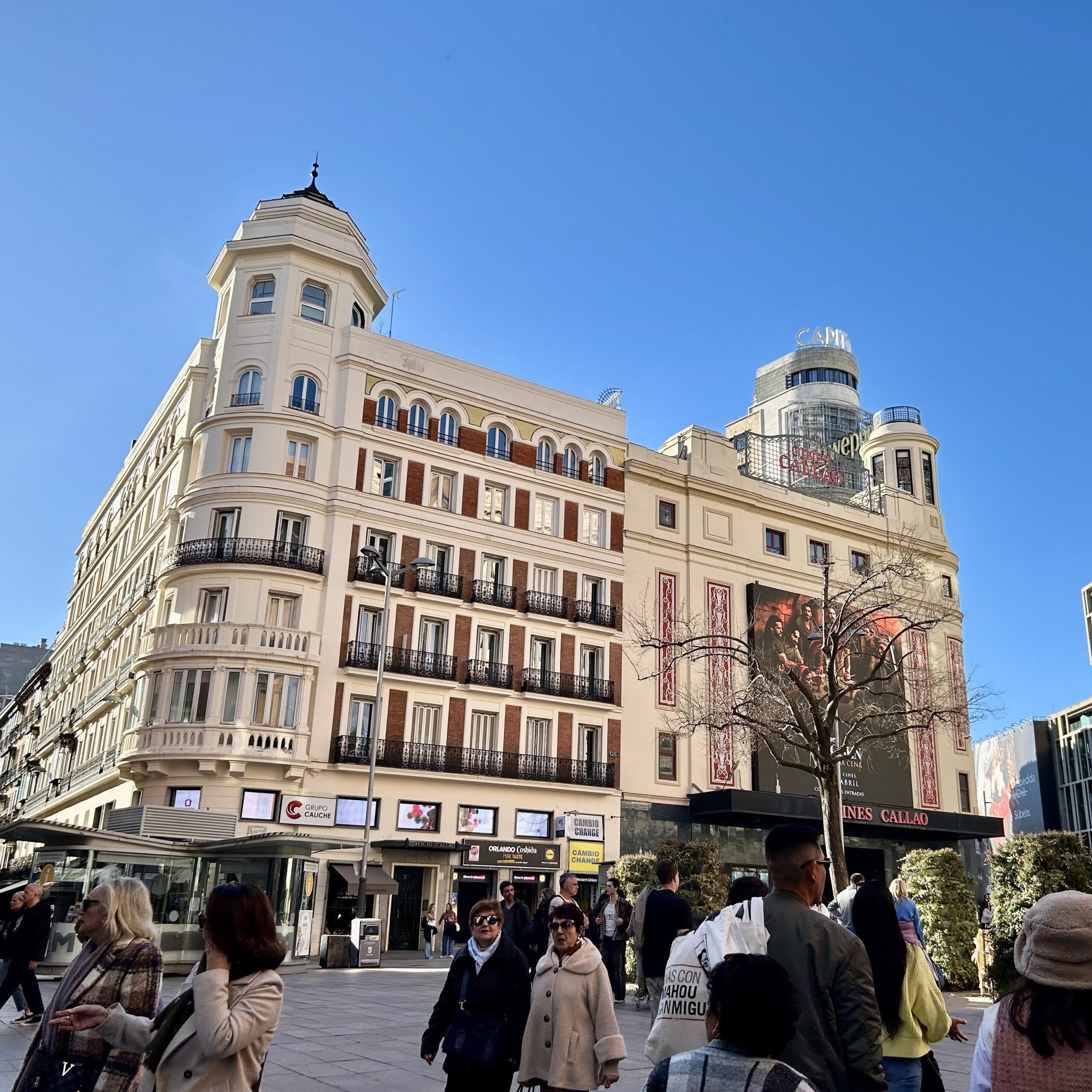 From the restaurant, we began a walk toward the Cibeles Palace in Retiro. This iconic neoclassical palace is also known as the Communications Palace. Originally, it was the headquarters of the Post and Telegraph service, but it now houses the Madrid City Hall and a cultural center. Next to it stands the legendary Cibeles Fountain, a beautiful sculpture representing the Roman goddess of the same name. Located in Plaza de Cibeles, it was redesigned by architect Ventura Rodríguez between 1777 and 1782, featuring the figure of the goddess sculpted by Francisco Gutiérrez Arribas in a chariot pulled by two lions, crafted by Roberto Michel.